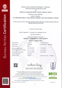 - Chứng nhận an toàn thực phẩm theo tiêu chuẩn toàn cầu BRCS (Anh Quốc) – 02/2026 – 02/2027